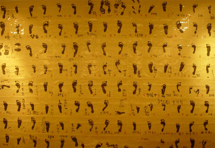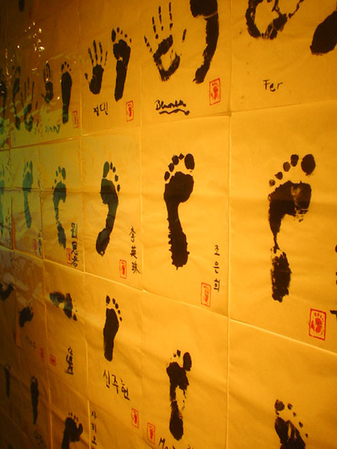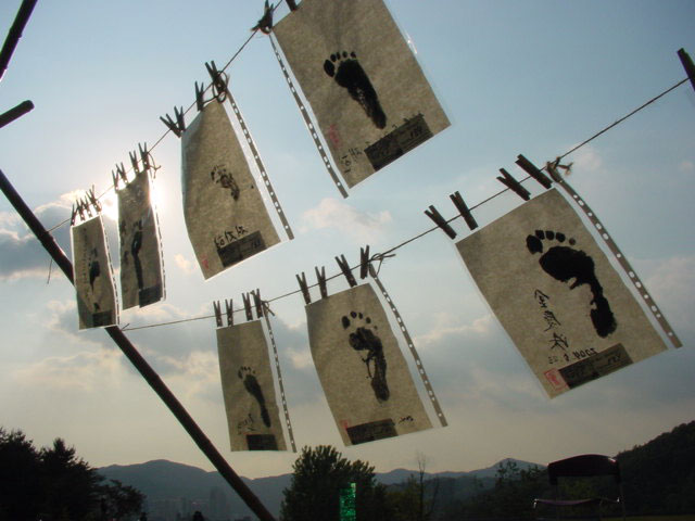 Take two footprints per participant. Return one to the participant and I keep the other.