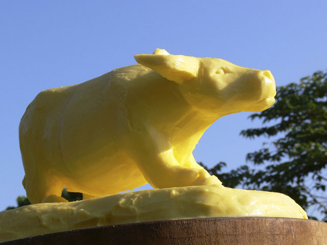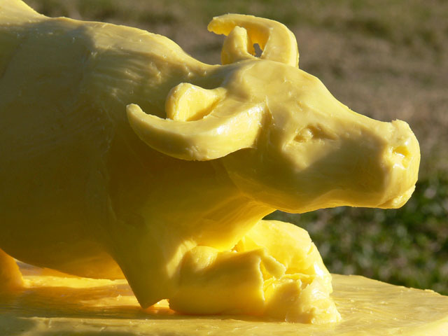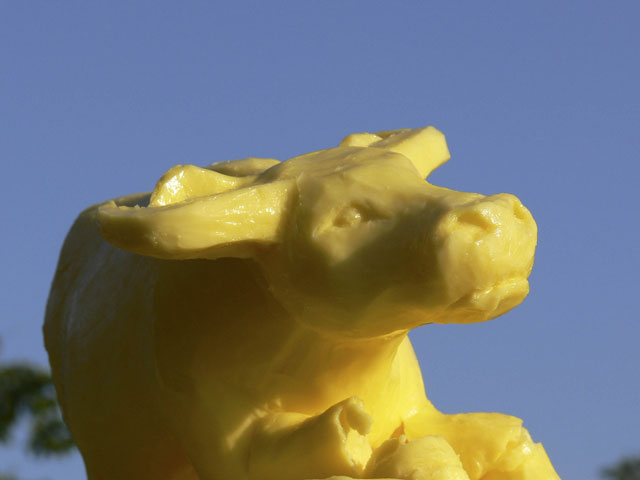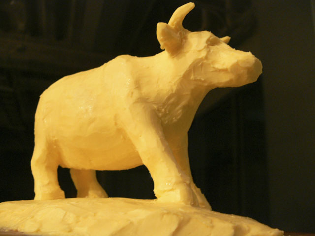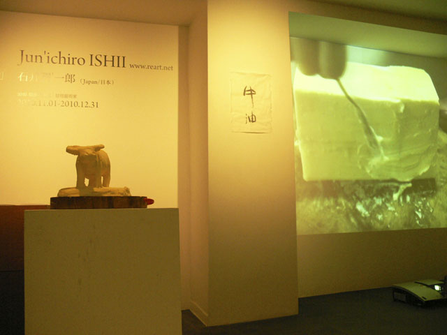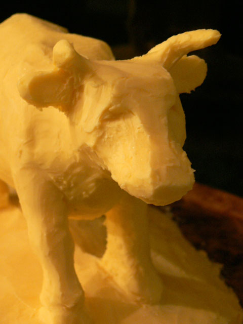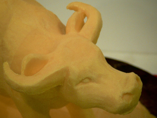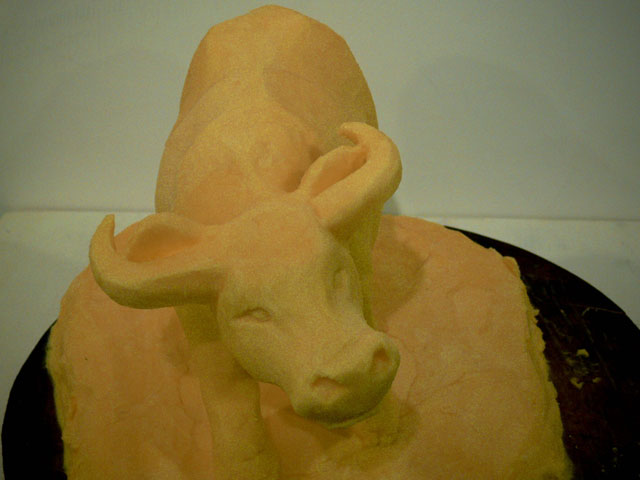 I will produce a small sculpture of a cow made by carving blocks of butter. The inspiration for this work derives from the character combination for "butter" in Cantonese "牛油". Seperately, "牛" signifies "cow", and "油" signifies "oil". Thus, butter is "cow-oil".