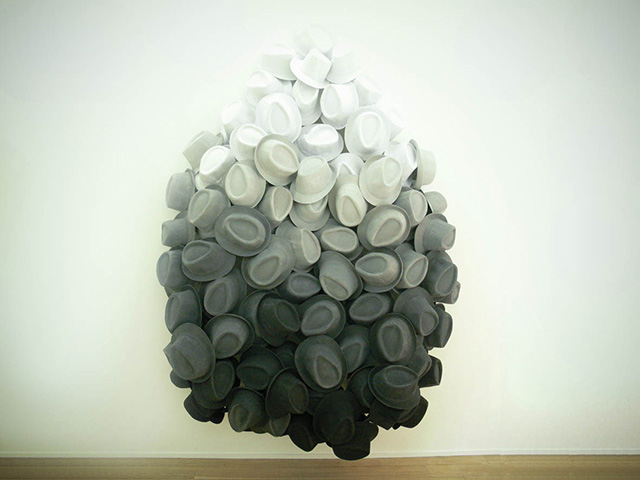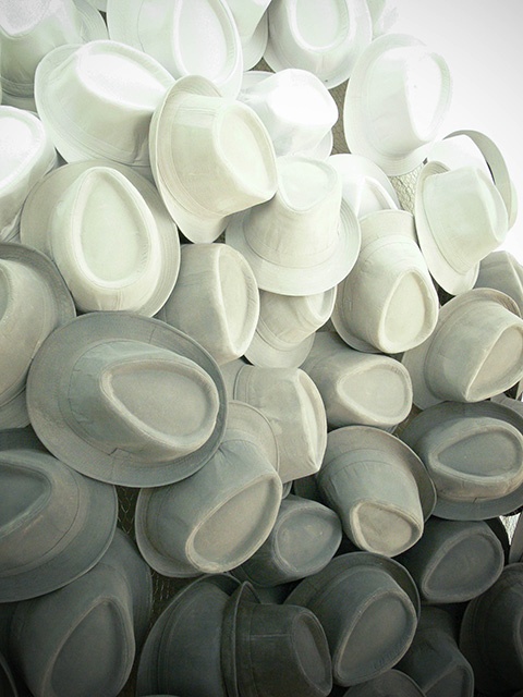 Work "Chapeau" is inspired from an English saying – 'Wearing many hats' – and a Japanese proverb – 'Nisoku no Waraji wo haku', 'Wearing two pairs of Waraji (traditional straw sandals)'.