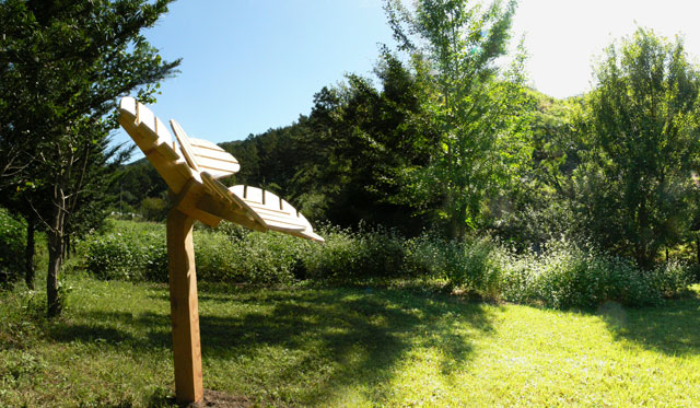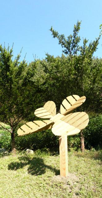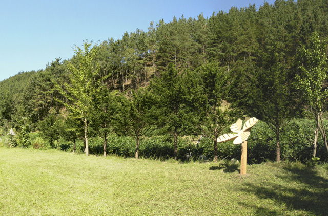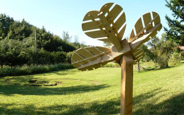 My interest concerning the series of wooden installations is to install a standardized symbol into the nature landscape.