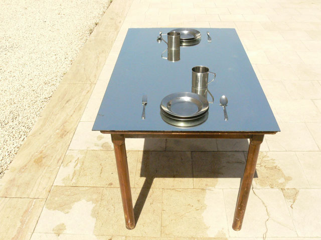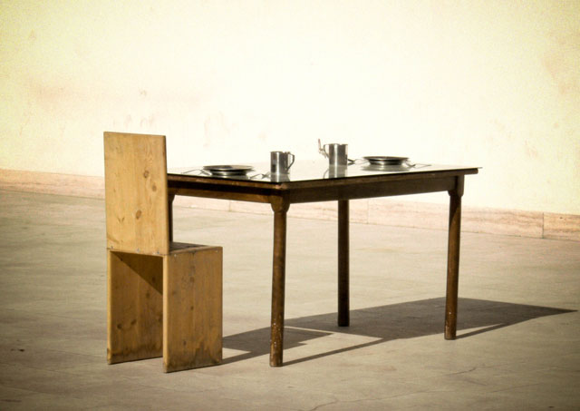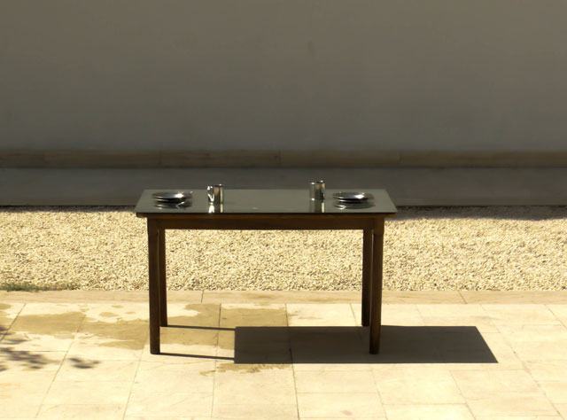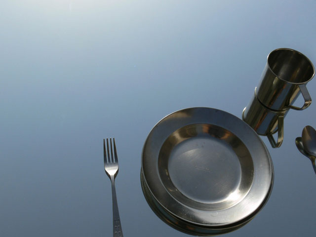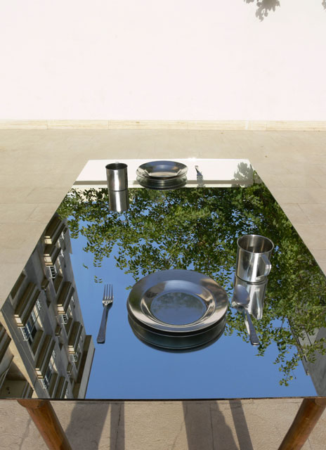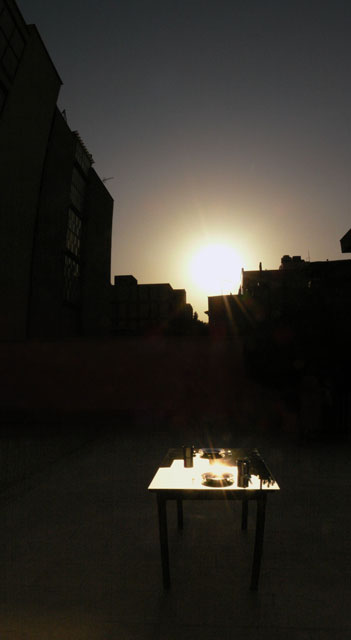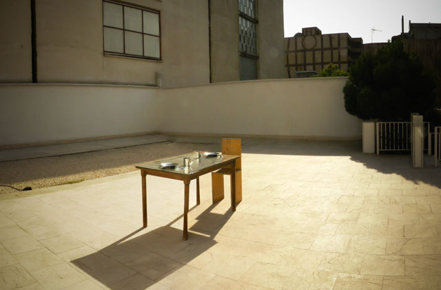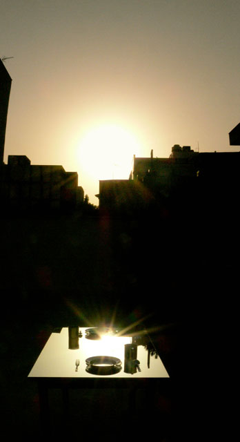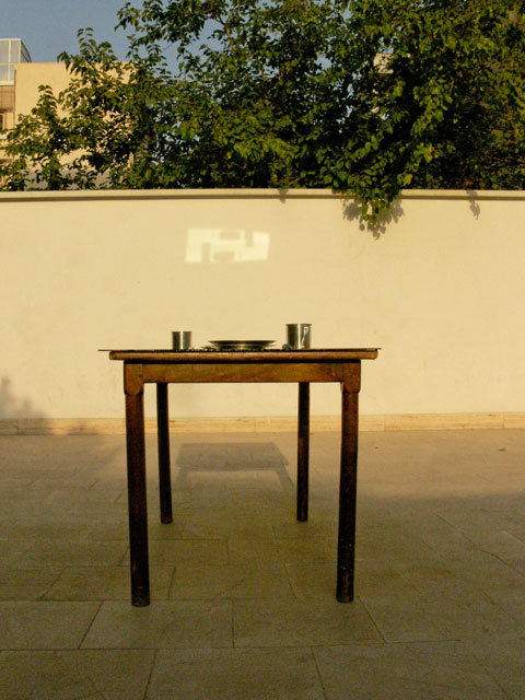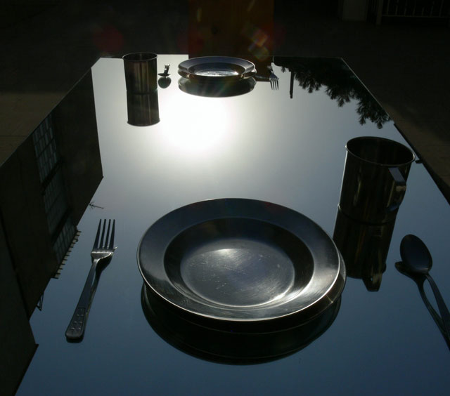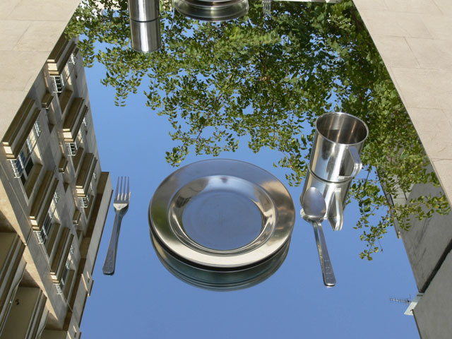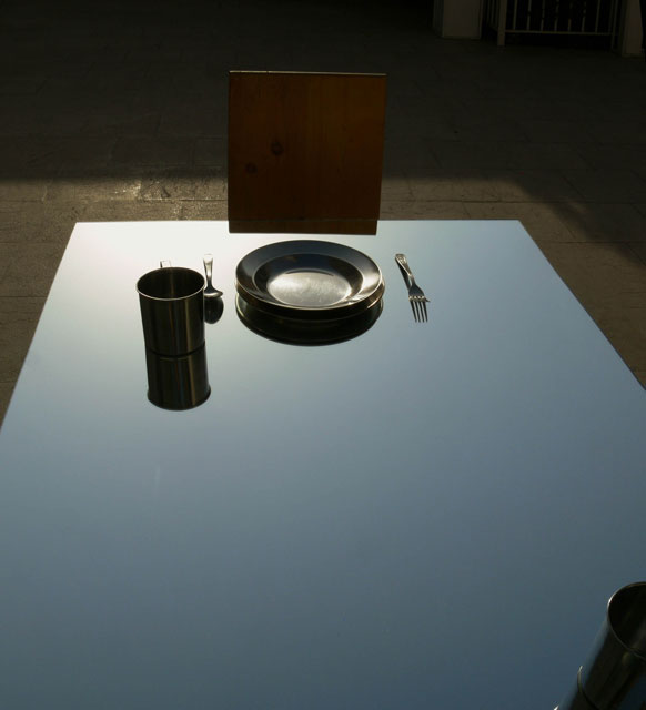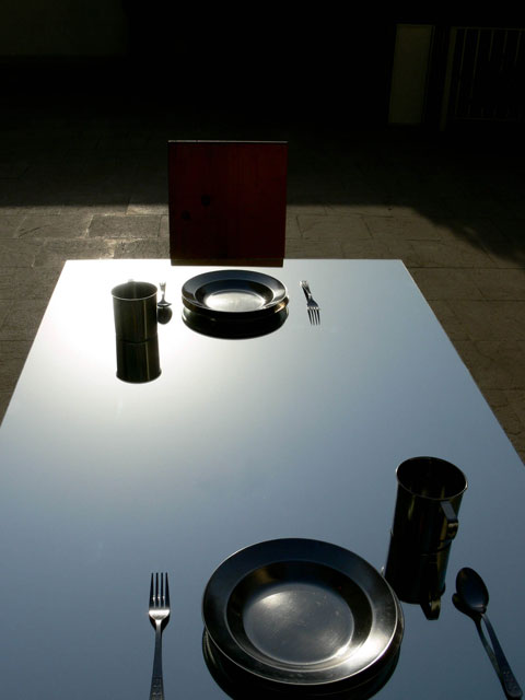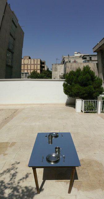 This simple installation is composed by mirror and silver table sets. By inviting sunlight to the table, I have presented this image as a cultural sketch from my short stay in Tehran.