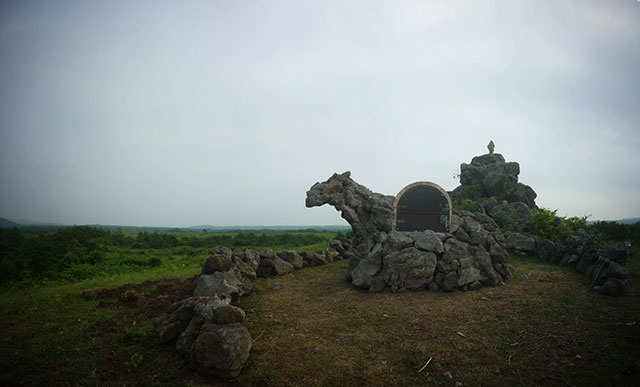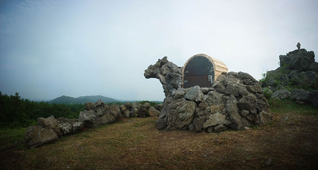 Installation "Fire Horse", located on the hill in the Jeju Horse Park facility, is a kiln which constructed by fireproof bricks and Jeju volcanic stones. The Museum provide a paper which one can write one's wishes, and burn the written wishes in this horse shaped stone oven. The work is not only intended to install a jinx-like story in the local society, but more try to bring out people to outside, while setting up a landmark where people can be gathered.