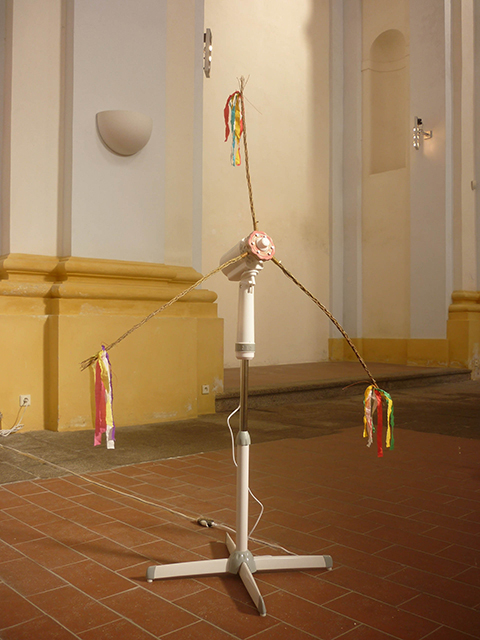 The work, Pomlazka, is an automated, traditional fulfillment machine, which is continuously swinging and repeating, even though the original meaning has been lost.